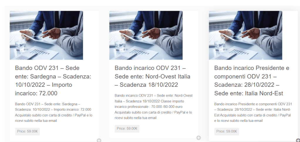 2 nuovi bandi per incarico ODV 231 – Importi incarichi: 72.000 euro / cadauno