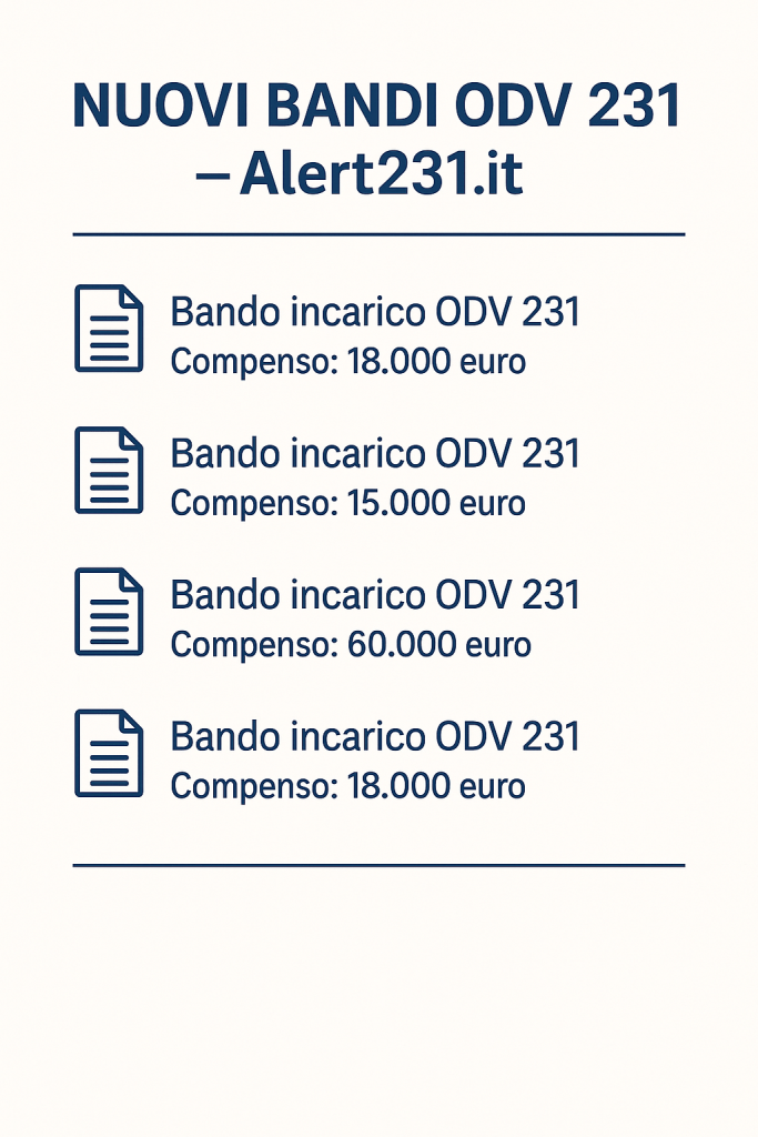 Nuovi bandi pubblici per incarichi ODV 231 e Consulenza 231