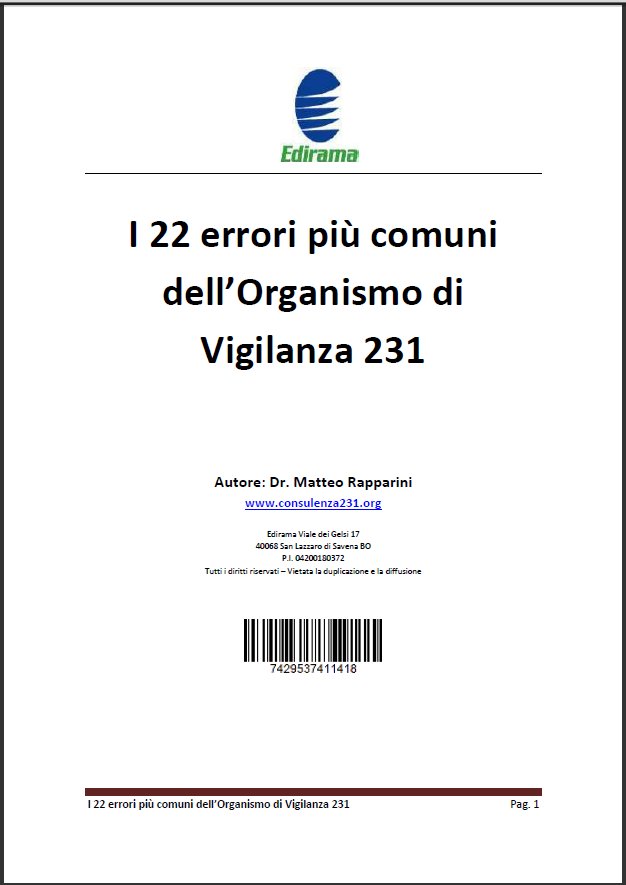 Ebook della collana 231 Veloce (in 10 minuti leggi ciò cercheresti in 5/6 ore), in cui sono pubblicati i 22 errori più comuni dell’Organismo di Vigilanza 231.