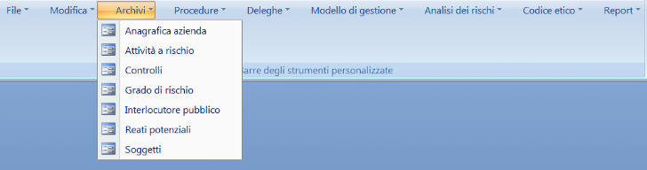 Le stampe realizzabili (Modello di gestione, Codice etico, Analisi dei rischi, Interviste, Procedure, Deleghe) sono esportabili in formato MS Word consentendo così la personalizzazione della documentazione.